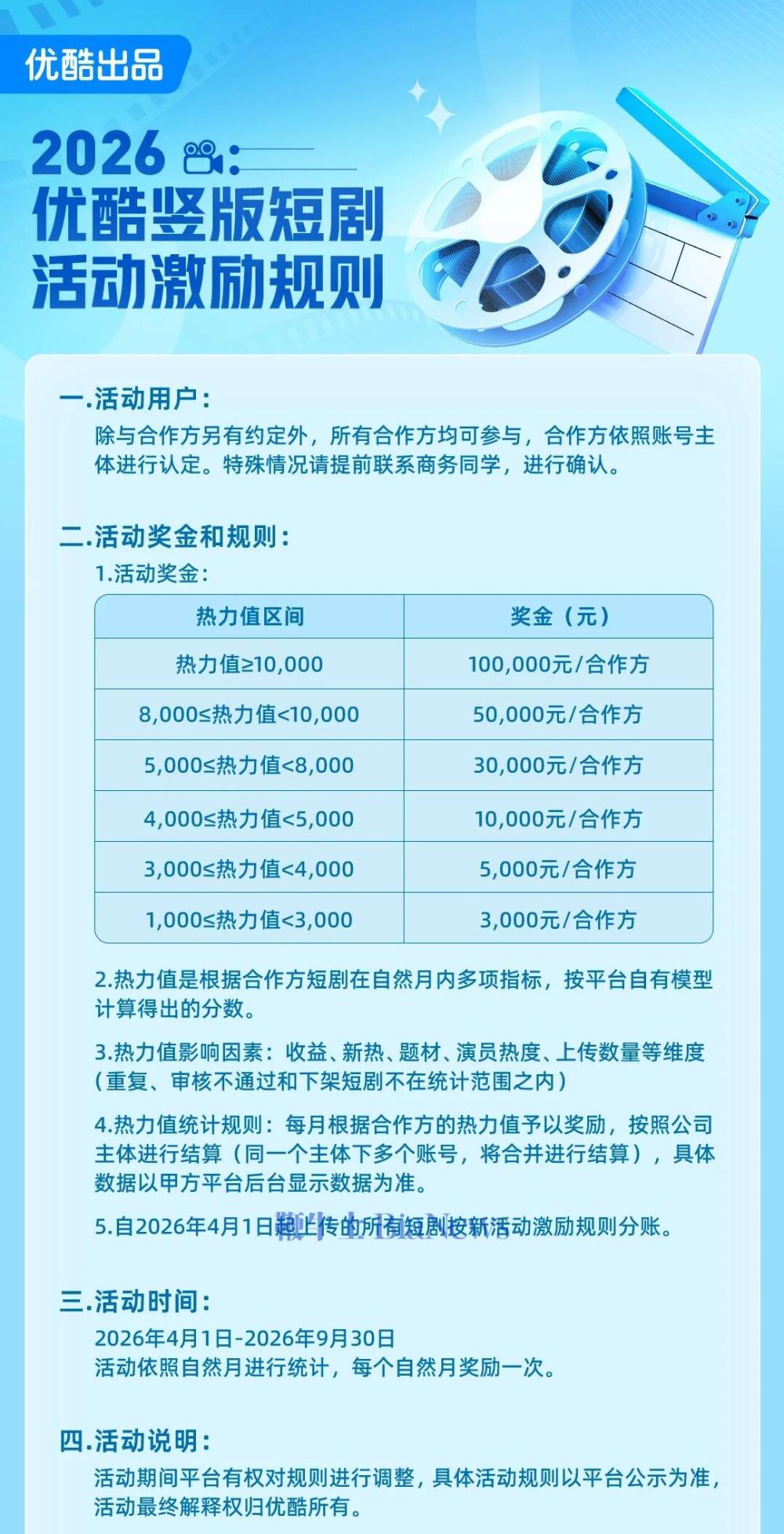 > 优酷发布竖屏短剧激励:无保底,最高10万