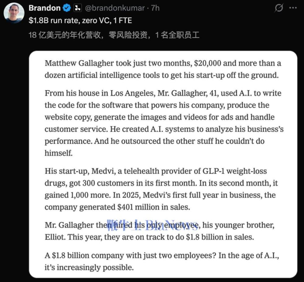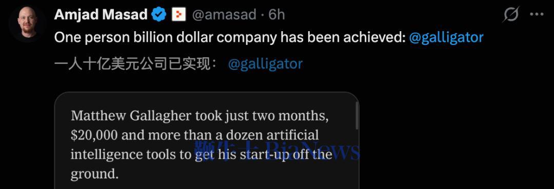 AI可以让一个人,建起一家年收入接近20亿美元的公司。