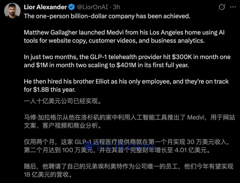 Medvi的案例之所以引发巨大关注,在于它验证了一个此前只停留在预言阶段的命题: