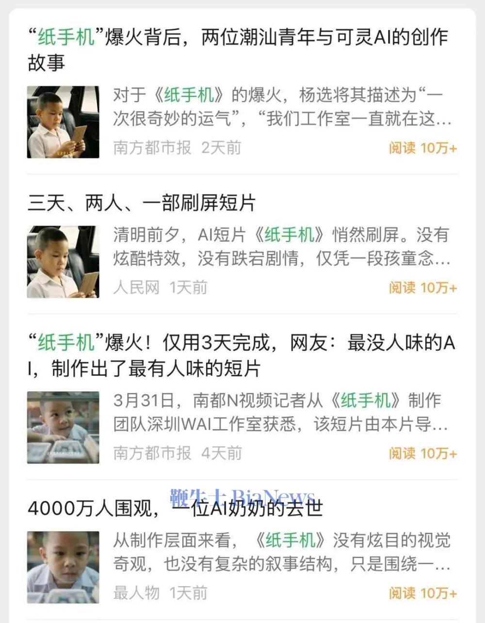 但B站在3月31日公布了这次AI创作大赛的颁奖,《纸手机》这部片子并没有入围所处的开放赛道的奖项池。