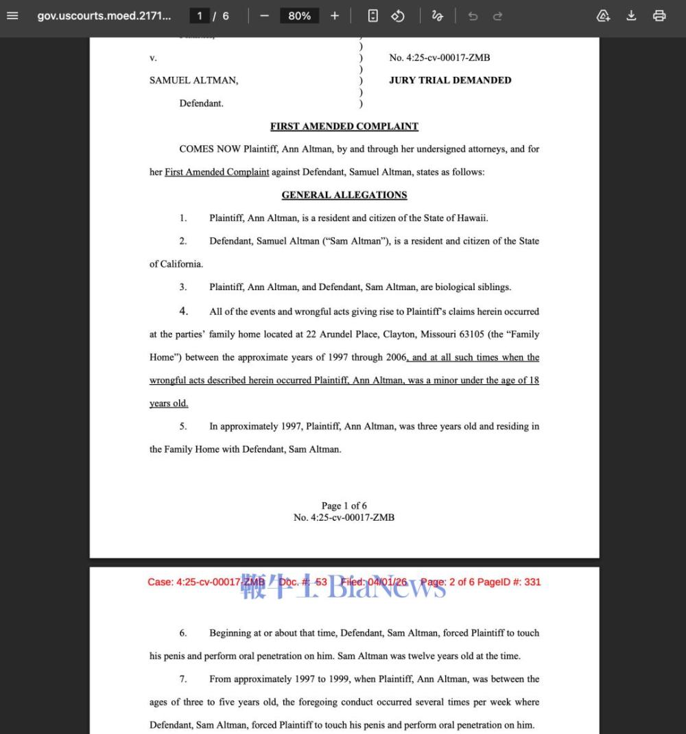 《纽约客》文章报道,在逼宫事件期间,董事会逼问奥特曼承认自己撒谎成性的事实。他反复说的一句话是:「我无法改变我的性格。」但如果他真的说过,这可能是整件事里他说过的最诚实的话。奥特曼的人格缺陷,恐怕不止这讨好型+反社会这两条。在最新的法庭文件中,他的妹妹指控他曾在未成年期间,对自己进行长达数年的性侵。