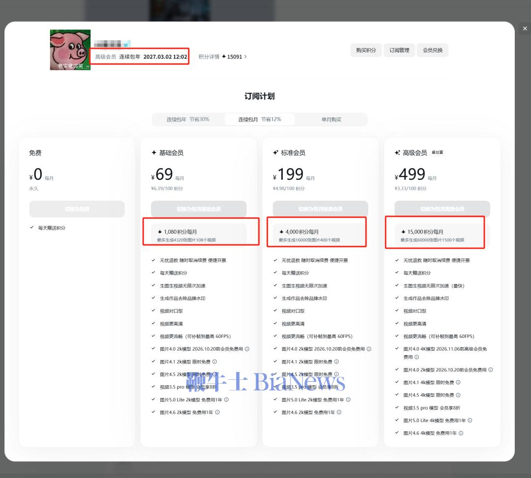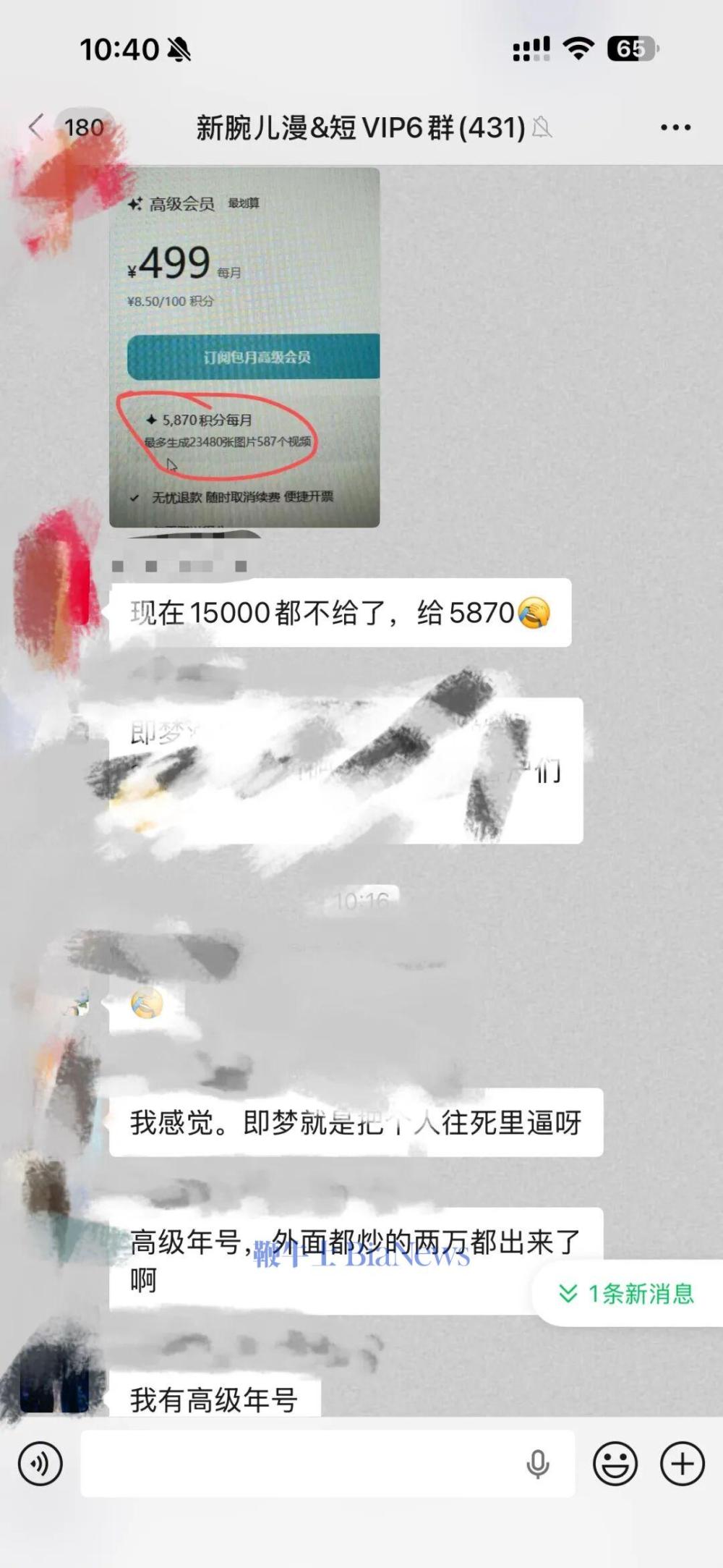 4月8日消息,新腕儿VIP社群群友注意到即梦会员发放积分的数量,缩水了。据了解,即梦此番“涨价”,仅面对新用户群体,老用户群体不变。新腕儿联系到某知名AI短剧导演,他是即梦的包年用户,早期代表作也在即梦平台生产。在即梦积分下降后,其即梦积分数量并未发生变化,基础会员、标准会员和高级会员的单月积分数量分别为1080/4000/15000积分。在今天上午十点左右,即梦三个VIP发放的积分数量分别为基础会员725积分/月,标准会员2210积分/月,高级会员5870积分/月。滑稽的是,到了11点,即梦会员价格再次出现波动。基础会员和标准会员的积分情况未变动,而高级会员的积分价格增加了290积分,现在是6160积分。原本用户对于即梦的涨价行为,情绪并未由太大波动。然而,仅隔一个小时,积分再次变化,一波骚操作还是遭吐槽了。