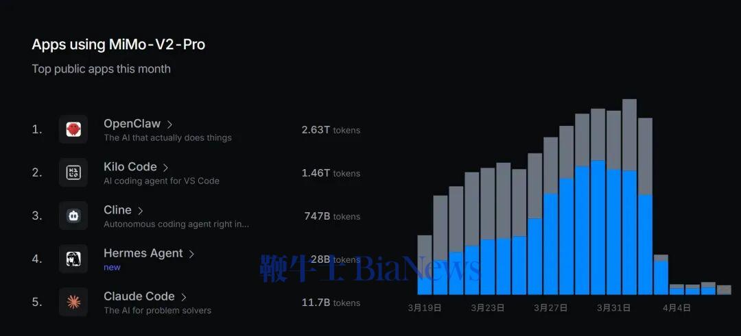 但挑战来得很快。免费期结束后,MiMo-V2-Pro在OpenRouter上的周调用量从高峰下滑。OpenRouter上的规律比较直接,在达到一定性能阈值后,谁便宜或免费,谁就有可能冲到榜一。它的排名证明了模型能力和可用性,但是同时,调用量受是否免费的影响巨大。