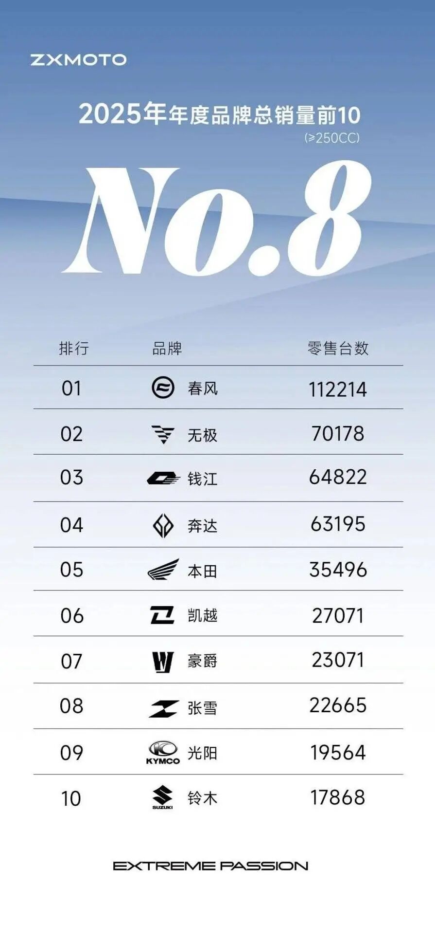 2025年全年凯越卖了27000台,张雪卖了22000台。同赛道老大哥春风卖了11万台(包含巡航),行业巨头日本川崎的销量是50万台(包括踏板和巡航)。