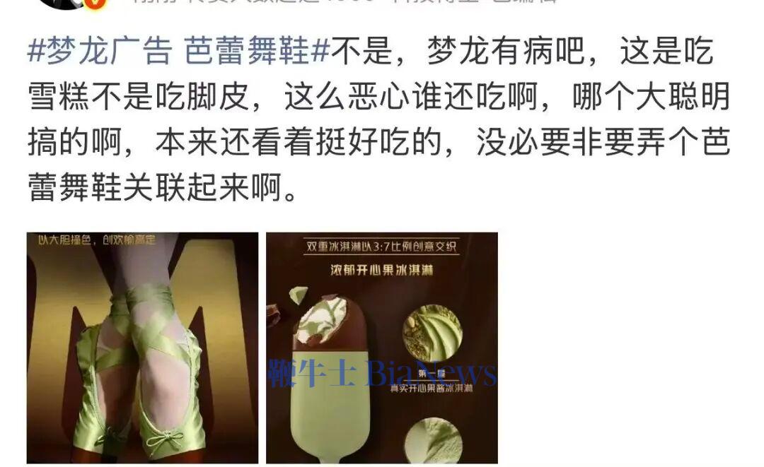 近日,梦龙冰淇淋以“芭蕾舞鞋撞色美学”为主题的广告引发广泛争议,不少网友认为将芭蕾舞鞋和冰淇淋关联让人感觉不适。