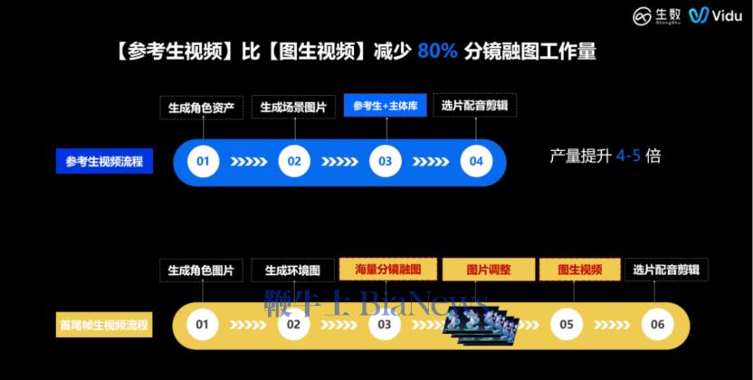 这套模式构建了生成角色资产、生成场景图片、参考生加主体库、选片配音剪辑的四步闭环。与传统图生视频相比,分镜融图工作量减少约80%,产能较传统模式提升4到5倍。白皮书明确指出,参考生模式与图生模式并非相互替代,而是通过场景化分工形成能力互补,两者组合使用可实现效率与品质的双重优化。