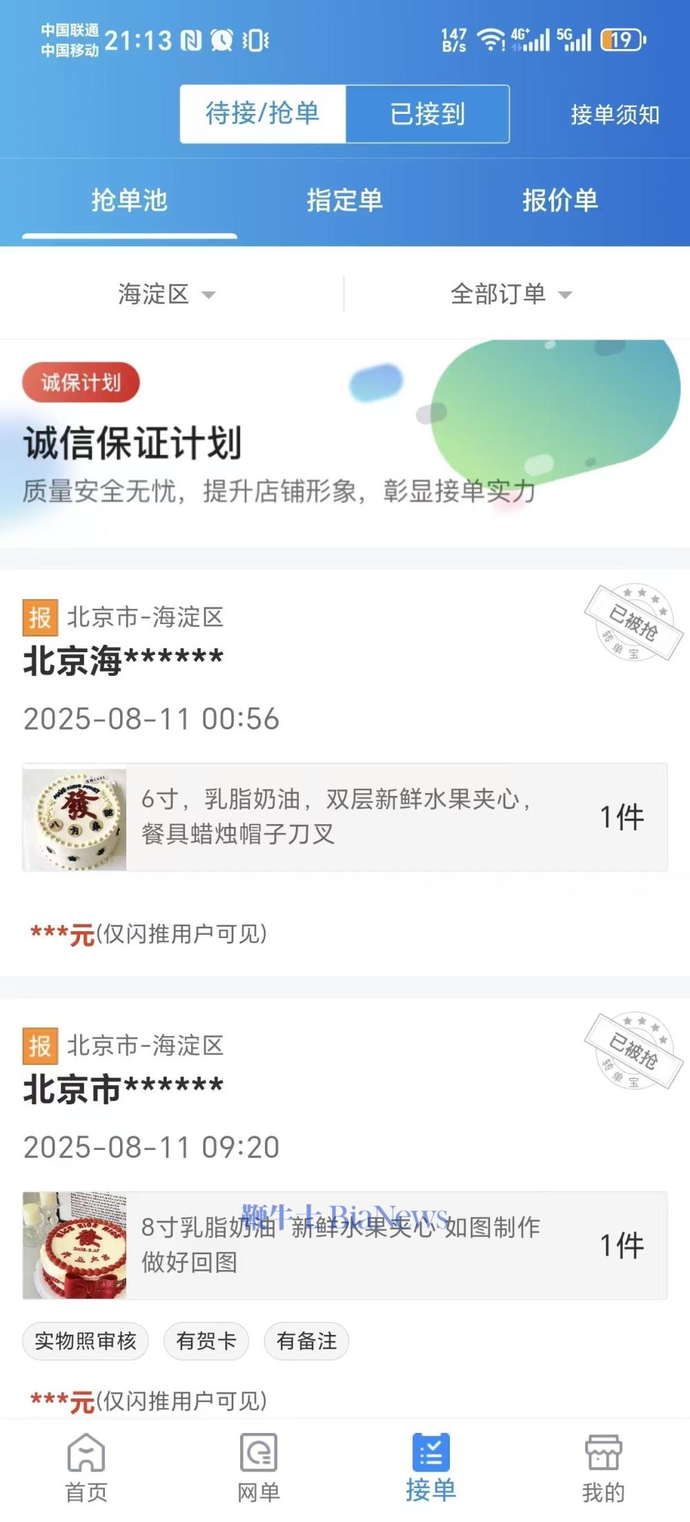 假证、假店都摸排到了,但蛋糕究竟是哪里制作出来的?为查清这个问题,执法人员下单购买多个蛋糕,并进行追踪。“调查中我们发现了一个叫‘转单宝’的平台,我们在外卖平台上下单,‘转单宝’平台随即就出现了我局订单,在‘抢单池’里很快就有接单店铺开始竞价。”北京市海淀区市场监管局综合执法大队四级主办李晓奎说。