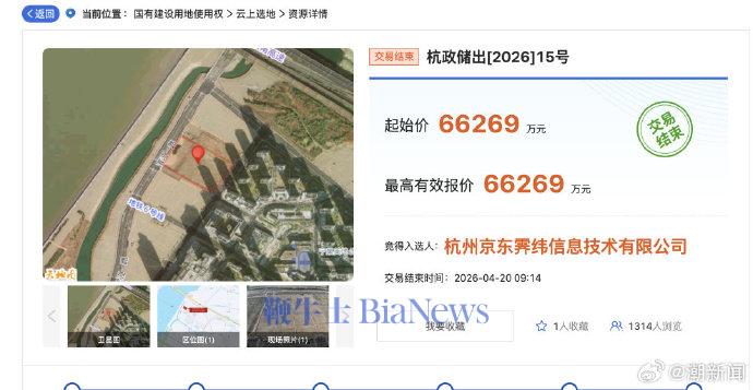 这意味着,备受期待的京东集团浙江区域中心总部用地,正式摘牌。