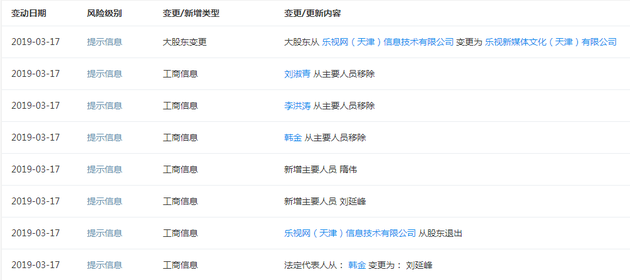 Bianews 3月19日消息,企业公开信息显示,3月13日,乐视网董事长刘淑青卸任西藏乐视信息技术有限公司总经理职位。同时,原法定代表人韩金卸任,新任法人刘延峰;大股东从“乐视网(天津)信息技术有限公司”变更为“乐视新媒体文化(天津)有限公司”。