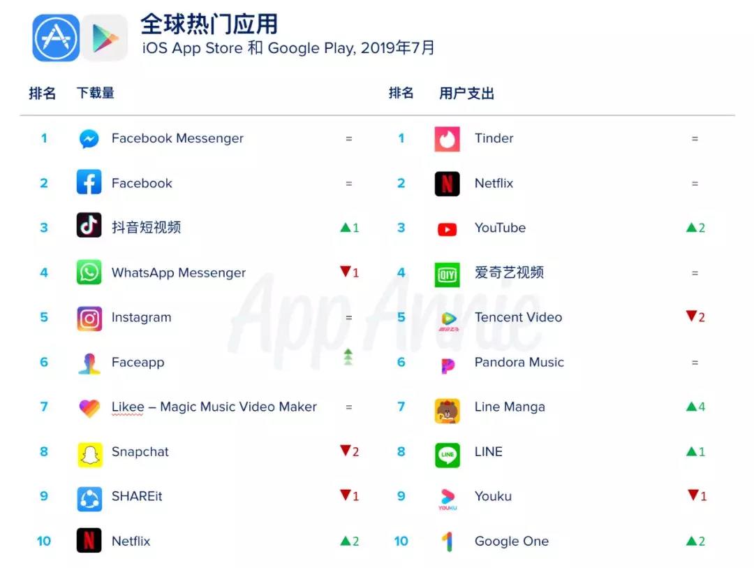 鞭牛士 8月8日消息,今日,AppAnnie公布的2019年7月中国热门iOS应用榜单。排名显示,拼多多、抖音、爱奇艺、今日头条、腾讯视频、优酷、百度、QQ、酷狗音乐、马蜂窝旅游排名下载量前十。