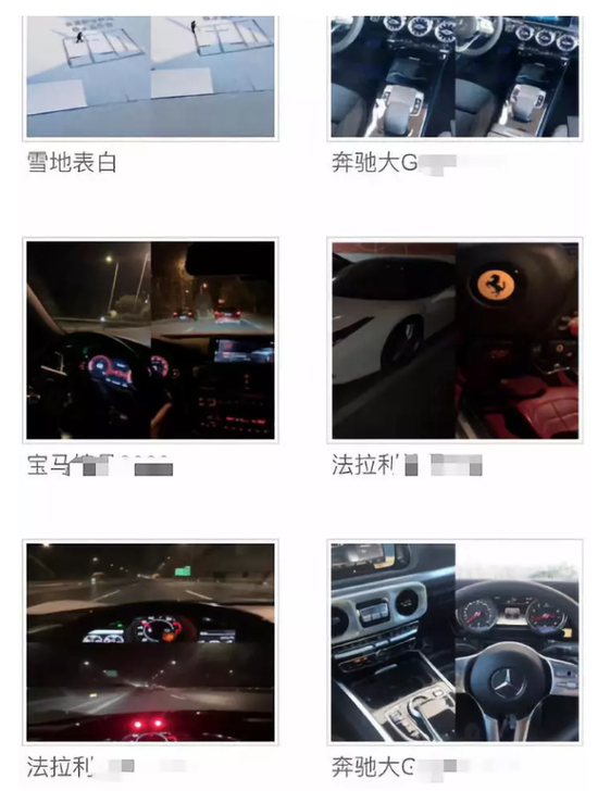 在婷婷的介绍下,懂懂笔联系到了一位自称能够帮网红定制“炫富素材”的机构负责人。对方发来一个链接,点进去之后可以看到大量的炫富视频。