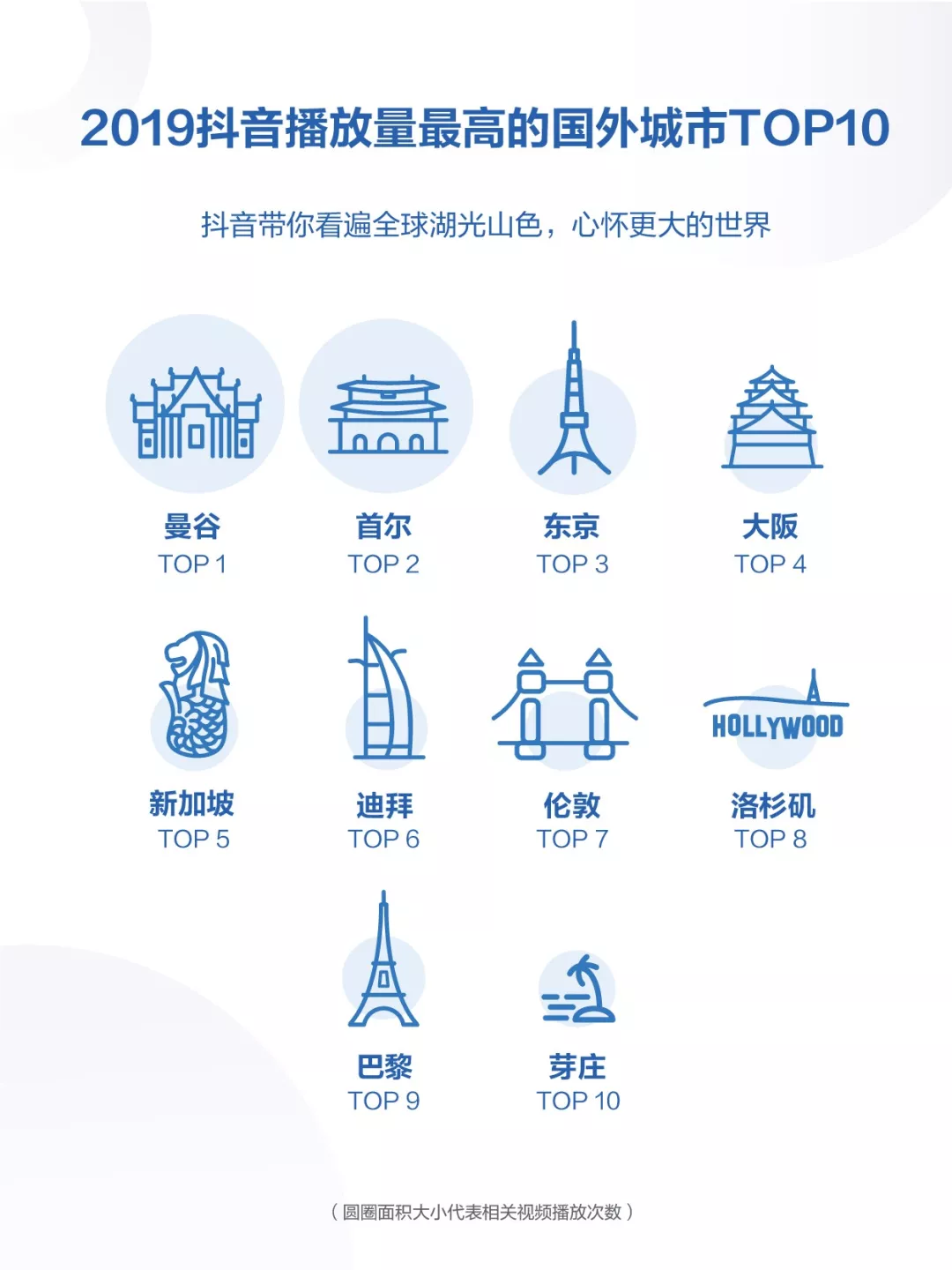 2019年抖音点赞最高的国内城市TOP 10为:北京、成都、上海、深圳、广州、杭州、重庆、西安、郑州、武汉。