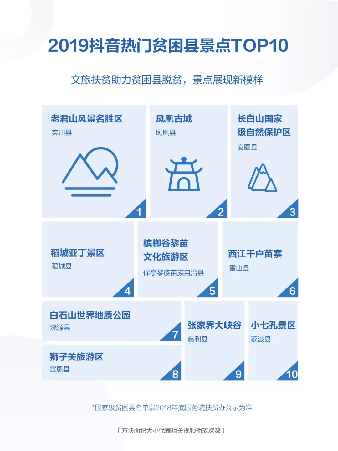 抖音表示,抖音已成为中国最大知识、艺术和非遗传播平台,2019年抖音最火的贫困县景点为河南栾川县的老君山风景名胜区。