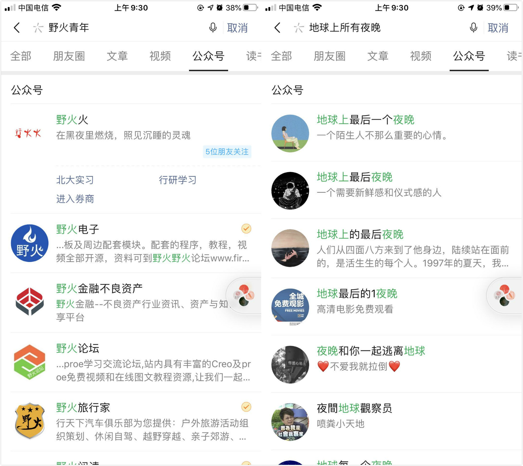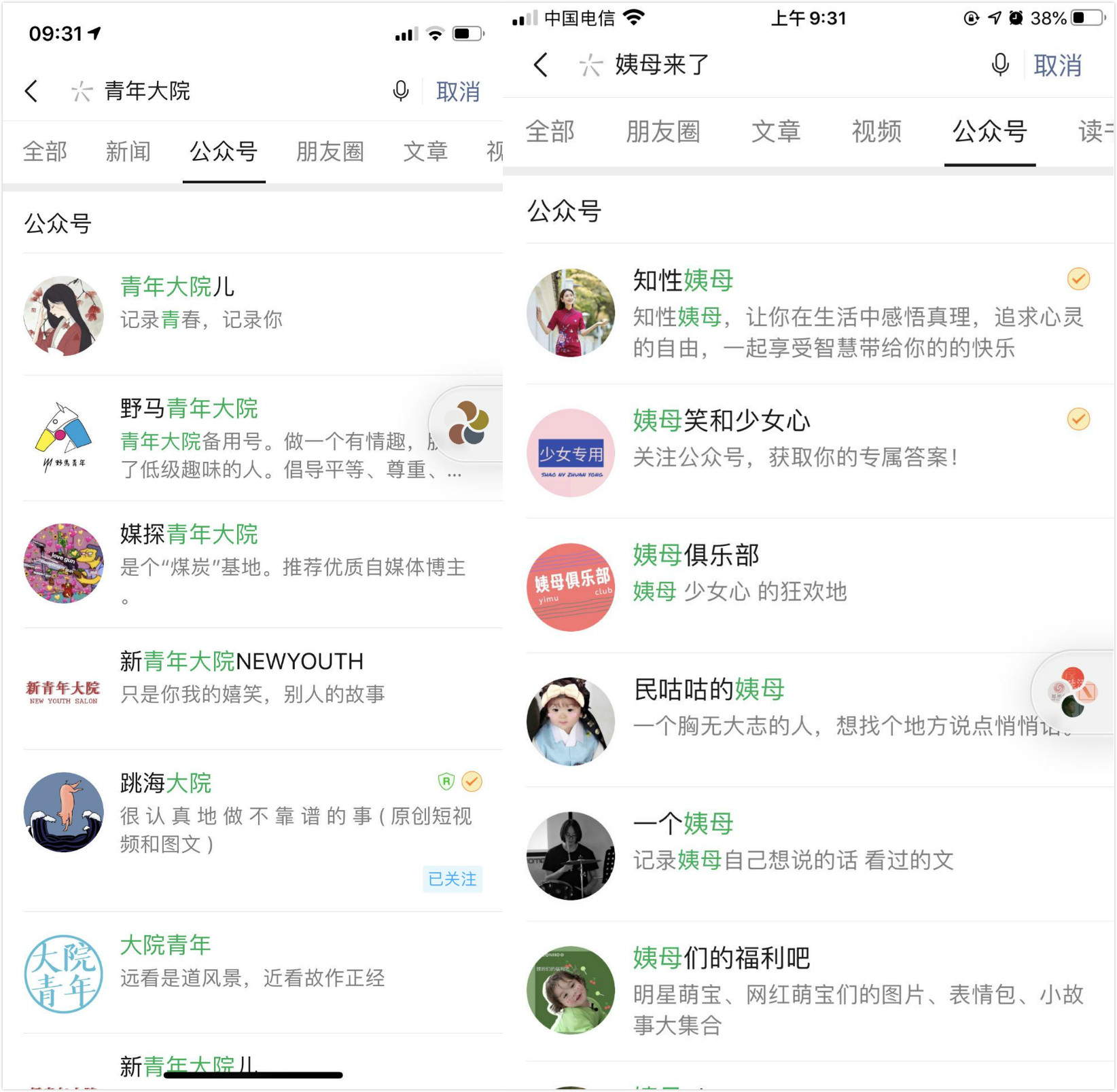 目前,“青年大院”及其矩阵号“野火青年”“姨母来了”“地球上所有的夜晚”均已无法在微信中被搜索到账号,但已关注用户仍可正常打开和阅读。