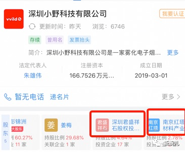 第二个值得注意的是,深圳小野占股15%。这家公司实际上就是小野电子烟的运营实体。