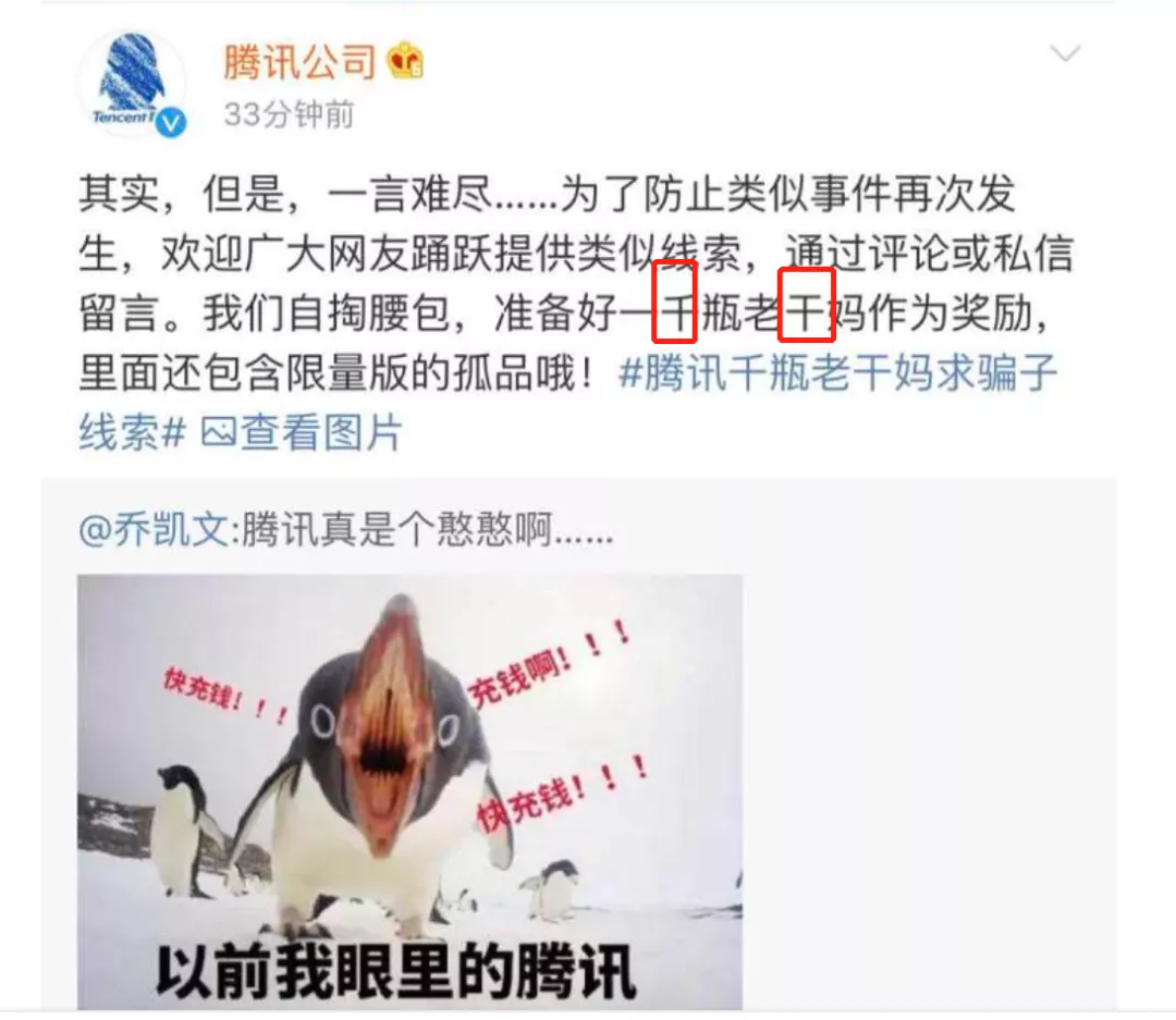 一般小说都不敢这么写,我现在最希望的就是这就是一本小说,并且十分想买到这位巨佬的著作。 最骚的是,干妈还表示保留法律追索权利,弄不好企鹅还得因为用了老干妈的肖像而赔钱,堪称被白嫖后还得给人开发票,这年头做生意太难了。 2 这种明明手持王炸,但预先埋伏,等待对手出招后再反杀,连续多次上热搜的操作,秀翻全场,受此影响,京东老干妈产品全线售罄,东哥笑死了都。 不得不说,干妈还是老的辣,如果后面再顺势推出一款鹅肉油辣椒新品,基本上就无敌了。 反观可怜的企鹅,只能默默地在B站发了一个动态。 原本只是简单的吐槽,结果留言区瞬间成了各家狂欢的海洋,各路官号一点都不给面子,可谓一方有难,八方点赞。 尤其是阿里动物园各种乱秀,秀的企鹅头皮发麻。 甚至还有传言说是企鹅错误的使用了搜索引擎,导致被骗。 某搜索引擎抓紧跳出来辟谣,你们不能什么屎盆子都往我头上扣。 事情的最高潮,是企鹅自己发了一个弱弱的动态。以及B站自嘲视频,彻底坐实了自己憨憨的地位。 这场全民逗鹅行动,史称逗鹅冤。 互联网好久没有这么快乐的热闹发声了,如果此时那个人还能带着祖传100万来发个微博,那才是真正的圆满,哎,我也不是怀念他,我主要是怀念2019年。 当然,企鹅虽然弱弱的,但也没完全认怂,注意再看自嘲声明,暗示了【千】和【干】,这种傲娇的样子,太可爱了。 但老干妈一点都没有因为企鹅的可爱而手软,直接在旗舰店上架了大客户专属辣椒酱,1000瓶一份,一点面子都不给。 看得我十分快乐,建议大家加大力度。 虽然老干妈看起来是单方面暴打了企鹅,但这件事情背后,还存在很多疑点,作为逻辑鬼才,资本夜里猛,佛尔摩斯老师打算给大家讲讲这个案子中存在的3个关键点,这个案子只是刚刚开始,还远没到结束的地步。 看这个案子的时候,除了开心,我们也需要清醒的看到几个关键点,才能吃出更高级的瓜。 3 第一个关键点,谁亏了? 短期来看,谁都不亏,长期来看,老干妈面临亏的风险。 是不是觉得很难以置信?明明是企鹅在遭罪。 请听我解释。 不论从什么角度看,企鹅都是不亏的。 首先,目前南山并没有撤销冻结,贵阳那边也只是正在调查,南山在等待贵阳那边的调查结果,这个结果其实还未可知,这个事情只是刚刚开始,后续的斗法还将继续,1600万未必是收不回来,或许会私下达成谅解然后打折,彻底竹篮打水的话,其实概率不大。 况且假设,我们就假设1600万都收不回来吧,企鹅也是不亏的,为什么。 首先,企鹅提供的推广服务,主要是线上的推广,游戏做个皮肤,搞个BANNER,出几个海报,植入一点要素之类的,这种推广的成本是不高的,1600万是报价不假,但不是成本。 真正的成本是完全可控的,不开心了王者荣耀多出一个皮肤就回来了,这点钱真不是什么大事儿,企鹅一个季度的营收是千亿级别。 当然,如果考虑到项目组饱经摧残的心灵伤害,那就不好算了,心灵是无价的。 我要特别同情项目组的人,妈个鸡伺候甲方整天被改需求已经够惨的了,更惨的是伺候了一年之后发现这不是甲方,不仅奖金没了,一年还TM白被使唤了,这谁遭得住,要换我得当场出家。 4 其次,企鹅这波自嘲,以及大家一起凑的热闹,本身就是一次非常漂亮的公关操作,一下子就给企鹅定调为了憨憨蠢蠢的傻白甜形象,网上各种调侃的段子,二次创作以及神图乱飞,大家都很快乐。 笑,是这个时代最好的解药与重构,没有人会真正讨厌一个给自己带来快乐的事情,不然吐槽大会怎么越来越像洗白大会了? 讲一个小故事,我听说有两个男孩子整天打架,互相不服气,一位智慧的班主任要求他们十指紧扣,谁放手谁就要像对方道歉,两个男孩子不服气的握了一天手之后,终于坠入了爱河。 这就是握手言河的由来。 这说明什么?快乐可以削减敌视。 之后但凡有企鹅的其他事件,大家一提到企鹅,都可以笑称是那个吃了假辣椒酱的憨憨,可长点心吧,这样一个形象,是非常好的,真正的聪明人是从来不介意别人说他傻和憨的。 这样一次大规模的整体企业形象优化,而且是企鹅这个体量级别,真的是价值千金的。 就算最后一分钱都没拿到,单看这轮传播也是绝对不亏的,大型企业一次整体形象宣传的成本超级贵而且还未必有这么好的效果。 所以企鹅的公关处理这次真的满分,建议各家公司都学习一下,这才是专业人士,我品牌老鸨表示服了。 更何况,企鹅在B站的这个非常有趣的诉苦视频中,还用了杨超越老师的超神文案改编,还没给钱,杨老师的一次赋能,算个百万级不过分吧,最后效果爆炸,疯狂涨了几十万粉更是意外之喜。 总之,即使钱要不回来,企鹅也不亏。 5 那为什么说老干妈可能会亏呢? 因为老干妈本身没有在此次事件中获得足够的收益,那点销量对于国民品牌老干妈而言还不够塞牙缝的。 至于大家的正面评价,说真的,对老干妈意义不大,因为老干妈这种硬通货不需要这种热度。 大家仔细想想老干妈这么多年,有搞过大量的推广和花里胡哨的宣传吗?很少对不对?因为产品够硬,产品足够牛逼的企业,就是这样的。 所以反过来,这就代表最大的形象利好,对于老干妈而言没有特别大的增益,因为本身已经是国民好感度满分了。 就像你给半吨老师提供健康管理的增肥课程,居然还想要钱?我一屁股压死你。 可能亏的地方在于,老干妈这次的口径是,没有商业合作,不知情,被三人冒充,以及伪造公章。 这些话,