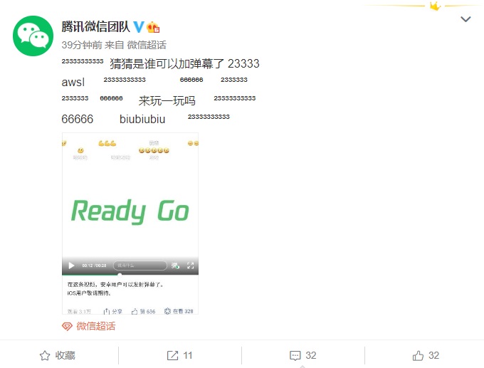 鞭牛士 7月17日消息,根据腾讯微信团队发布的消息,公众号视频现已可以加弹幕,目前仅限安卓端,iOS 用户还要再等一下。