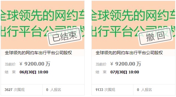 鞭牛士 7月22日消息,昨日,某“全球领先的网约车出行平台公司”部分股权昨日出现在阿里拍卖平台上,并显示将于7月29日在阿里拍卖平台进行网络拍卖,起拍价9200万元。