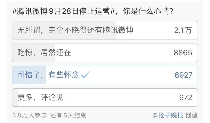 9月5日,腾讯微博团队发布公告称,由于业务调整,腾讯微博将于2020年9月28日停止服务和运营,届时将无法登录。新浪微博、微信成功的经验已经说明,在互联网尤其是移动互联网时代,同质产品只有老大没有老二。新浪微博上线后,腾讯、网易、搜狐都推出过微博产品,但无一例外都退出了。遥想当年,这款仅比新浪微博晚了8个月的产品一度也有自己的辉煌时刻。腾讯在2011年年报中称,腾讯微博在2011年年底注册帐户数达3.73亿,打败新浪微博、网易微博、搜狐微博,成为中国最大的微博。然而不到三年,腾讯微博事业部便面临解散。一共活了10年,后6年一直处于“植物人”状态,腾讯微博“正式关停”的公告一出,相比惋惜,更多的声音则是惊讶,“原来腾讯微博还在”。这让人不禁感慨,腾讯微博十年间都经历了什么?如今评论这个产品,都要加一个“想当年”的前缀。相信很多人都有这样的体验,即使与QQ空间打通,腾讯微博的用户活跃度依旧低下,由于QQ用户的画像普遍低龄化(中小学生),使其社区氛围和发言内容也较为低龄化。新浪微博早些年通过几次大的社会话题积累起了影响力,与之相比,腾讯微博当年在重要的舆论场上,几乎没有太多声音。“这批QQ用户需要的是扩列,是通过社交来找存在感,而不是发言。”资深产品经理判官称,这是腾讯微博迭出大众视线的原因之一。不仅如此,在这10年间,即便腾讯每每倾全集团之力扶持腾讯微博,却总是起个大早赶个晚集,接连错过了移动互联网和短视频时代的红利。这让曾经的腾讯微博事业部员工徐清感到遗憾,“我们不是被竞争对手打败的,是被自己的错误拖垮的”。判官分析道,腾讯每一次做新产品时,都是建立在其平台的优势上进行大水漫灌,这种方式太过粗放。“这就相当于能不能长出好庄稼,完全依赖于它灌的这块地肥不肥。”不过,虽然打败了腾讯微博,但新浪微博的趋势也没好到哪里去。去年,曹国伟在新浪内部年会上感叹,“我们对微博正重返中国互联网市场的中心舞台感到非常自豪。”但一家独大的新浪微博,在直播、短视频折戟,净营收和用户增速放缓,过度依赖广告的困境下,如何在下一个十年,继续留在舞台中心呢?9月6日,当深燃财经尝试登陆腾讯微博,发现页面长时间处于加载状态,好不容易页面加载完毕,发现只剩下“首页”和“看视频”两个主功能,原有广播和听众记录已全部被清空。资料显示,腾讯微博于2010年4月1日开始小规模内测,5月1日开放用户邀请注册。当时仅支持文字形式,图片功能暂未对用户开放,字数限制为140字。这一时间比2009年8月推出的新浪微博晚了8个月。上线之初,腾讯微博的一句Slogan针对性明显:“与其在别处仰望,不如在此处并肩”。直接在QQ弹出通知,让QQ用户开通微博,优势非常明显,不愁没用户。内部资源上,腾讯配备了战役级别的资源对腾讯微博进行导流支持,把当时中国最大的社交软件QQ作为引流入口,用户在QQ上更新状态,都能同步到腾讯微博;腾讯的其他部门也被分配了微博拓展任务,与绩效考核挂钩。腾讯微博还投入了大量真金白银拼抢名人资源,从送苹果手机到支付高额“创作费”,马化腾亲自上阵,邀约名人朋友注册。接下来的两年是其高光时刻。作为腾讯生态极其重要的战略产品,腾讯微博的Logo出现在腾讯年报封面。腾讯在2011年年报中称,腾讯微博在2011年年底注册帐户数达3.73亿,打败新浪微博、网易微博、搜狐微博,成为中国最大的微博。然而不到三年,腾讯微博事业部便面临解散。据了解,2013年11月,腾讯内部做了调整,不再将微博作为战略级产品。2014年7月,腾讯宣布将腾讯微博和门户融合,腾讯微博事业部最终解散。一条面向用户的通知也能证明这一点,一共活了10年,后6年一直处于“植物人”状态。不止一位受访者认为,之前虽然没有实质上关停,但产品本身已经处于关停状态了,现在关停消息选择在9月5日这个时间点发布,更多是基于内部调整。判官告诉深燃财经,一个产品或一项互联网服务,上线是很容易的,在产品设计上加需求也很简单,但要下线,就很难了,只要哪怕还有一个用户在用,就不能轻易关停,尤其是腾讯这种大企业,因此腾讯微博有一个有序撤出、陆续切断的过程,到最后,清理得差不多了,官方宣布正式关停。徐清在次日一早的朋友圈看到了原同事们转发这一消息,他的身份是前腾讯微博事业部员工。“说实话心有不甘,我们不是被竞争对手打败的,是被自己的错误拖垮的。这好比打仗时,自己武器本来挺好,但战术不对,非得跟练家子比拳脚,结果拿着突击步枪被打了个乌眼青。”他对深燃财经说。徐清没有经历腾讯微博的高光时刻,但也看到了腾讯举全公司之力所做的努力,把所有资源给到,用他的话说,“但路走歪了”。原因之一,简而言之就是,腾讯微博对产品定位不准,用户大部分来自于QQ,产品属性应该以社交为主,没有新浪微博的媒体属性,却非要以己之短硬磕,结果只能一直跟在对手屁股后面跑。比如,他亲眼见过,一个领导对下属说,“你看新浪微博又如何如何了,你们怎么没有”,产品就去抓紧开发。又一个领导问,“某大V在新浪有微博账号,为什么不在腾讯开一个”,BD就马上去拓展。但这与包括徐清在内的另一派的意见相左,后者认为晚发力的腾讯微博并非没有自己的机会。支撑的论据是,腾讯微博用户多是从QQ引流而来,用户更新的内容多以