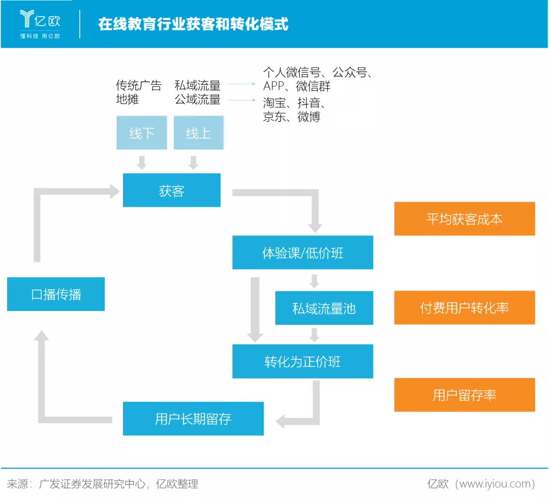 “目前来看,获客的方式跑出了两条路:一是砸钱,二是运营私域流量。作业帮背靠百度,有天然的流量优势,但大多数机构缺少自己的‘流量池’,获取新的流量就会依赖广告投放。”某上市教育机构业务架构师花荣,向亿欧指出了头部机构流量运营的方式。