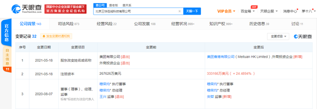 美团关联公司注册资本增至约33亿美元 增幅超24%
