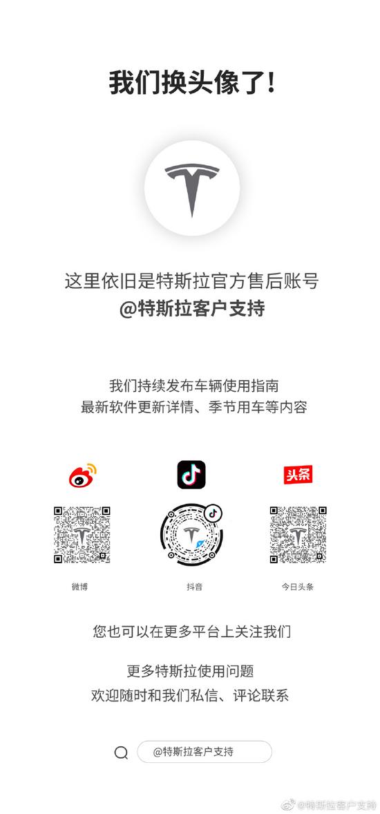 鞭牛士 6月22日消息,据微博@特斯拉客户支持,特斯拉官方售后账号更换新Logo,此前的红色Logo更变为现在的灰色Logo。特斯拉官方微博头像也已同步更换为新的灰色Logo。